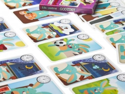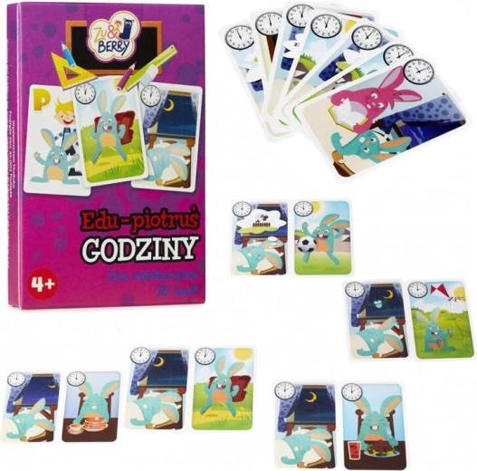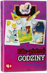 Edukacyjna wersja klasycznej gry Piotruś rozwija myślenie logiczne, spostrzegawczość i umiejętność dopasowywania. Dzieci łączą karty z tą samą godziną na zegarze, ale inną porą dnia – na przykład o 2:00 możemy spokojnie spać albo jeść obiad. Gra jest zabawna, a jednocześnie uczy odczytywania czasu na zegarze analogowym.