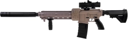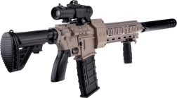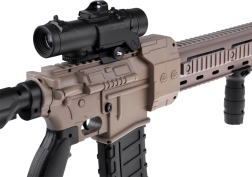 - Automatyczne przeładowanie, elektroniczny strzał, przesuwna optyka, przesuwny przedni chwyt, pasek na ramię