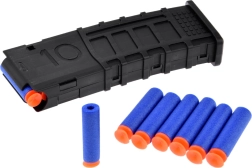 Odłączany magazynek z łatwym zwalnianiem przyciskiem oraz miękkie piankowe strzałki umożliwiają szybkie przeładowanie i bezpieczną zabawę.