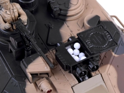 Wieża obraca się do 140°, a lufę można podnosić i opuszczać do 30°. Dzięki temu łatwo wycelujesz w tarczę i poczujesz autentyczne sterowanie czołgiem.