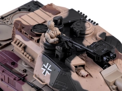 Odkryj dopracowany w detalach czołg RC LEOPARD 2, który wiernie odwzorowuje prawdziwą maszynę bojową. Solidna konstrukcja z funkcjonalnymi gąsienicami radzi sobie także na trudniejszym terenie, a obrotowa wieża i regulowana lufa zwiększają autentyczność. O realistyczne wrażenia dbają dźwięki strzałów, efekt odrzutu i przednie oświetlenie LED.