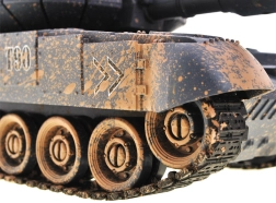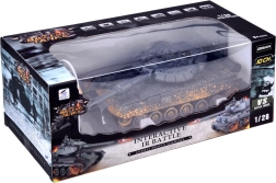 Model jest zasilany dołączonym akumulatorem, co obniża koszty eksploatacji. Przednie diody, tylne wskaźniki statusu bitwy oraz autentyczne dźwięki silnika i wystrzału potęgują wrażenia z akcji. W zestawie znajduje się także figurka czołgisty z karabinem maszynowym oraz otwierany właz wieżyczki.
