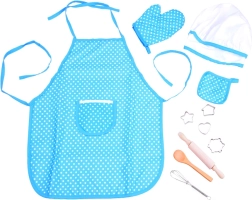 Fartuch, czapka, rękawica, podkładka i narzędzia do pieczenia w jednym opakowaniu – wszystko, czego dziecko potrzebuje do zabawnego i prawdziwego gotowania.