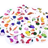 Przyciągające uwagę obrazki marchewek, groszku, cytryn czy winogron utrzymują koncentrację i uczą rozpoznawania kształtów oraz kolorów.