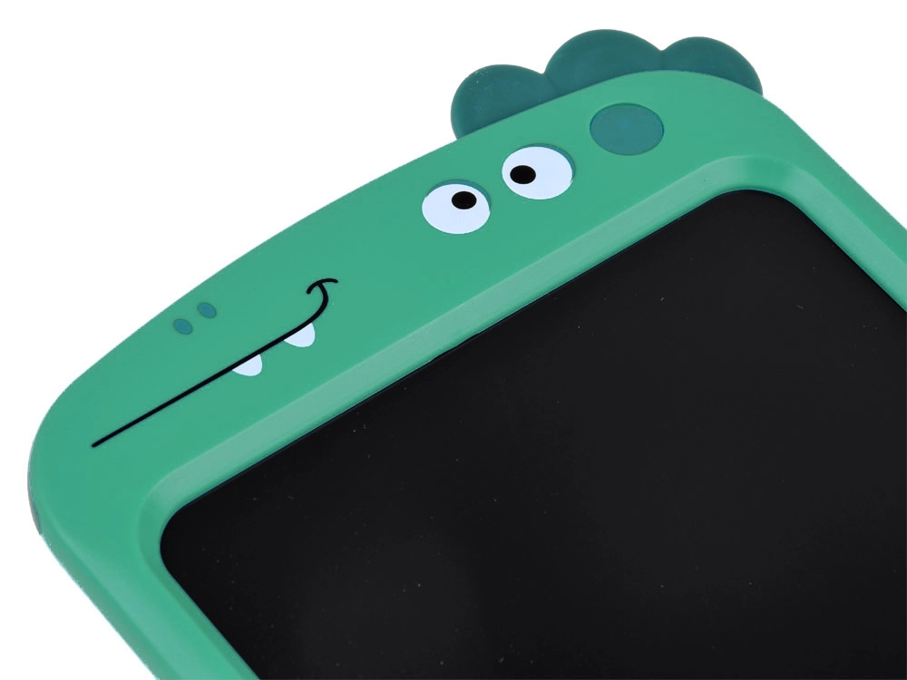 Wspieraj kreatywność dzieci z wesołym tabletem LCD przypominającym dinozaura. Dzięki dużej powierzchni roboczej 17 × 12,5 cm mali artyści mogą wygodnie rysować, pisać i trenować litery. Wystarczy nacisnąć zielony przycisk czyszczenia, a powierzchnia w mgnieniu oka znów jest czysta.