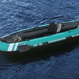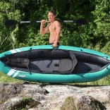 Lekki i wytrzymały nadmuchiwany kajak BESTWAY jest idealny na relaksujące wycieczki po jeziorach i spokojnych rzekach. Dzięki konstrukcji z mocnego winylu i nylonowej powłoce jest odporny na przebicia, promieniowanie UV oraz wodę i oleje. Wyposażony w regulowane oparcie, linę bezpieczeństwa dookoła, zdejmowaną płetwę stabilizującą, a w zestawie znajduje się również aluminiowe wiosło dwupiórowe oraz ręczna pompka. Udźwig do 130 kg i łatwe przenoszenie dzięki solidnym uchwytom.
