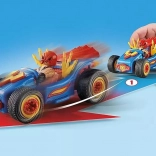 Szybki zestaw wyścigowy PLAYMOBIL Funstars Racing: Zapaśnik dostarcza akcji od pierwszej chwili – figurka PLAYMOBIL, gokart z silnikiem na naciąg (pull-back) oraz mnóstwo zwariowanych akcesoriów do dynamicznych wyścigów, przeszkód i akrobatycznych trików. Świetny prezent dla dzieci od 4 lat, które kochają samochody i szybką zabawę.