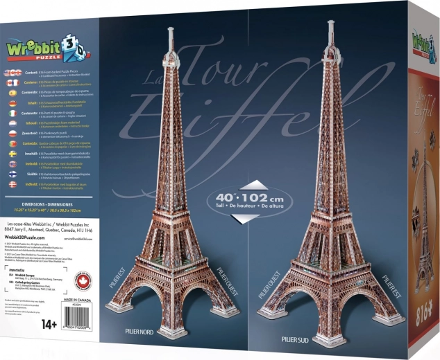 Gotowy model ma ok. 102 cm wysokości i wiernie odwzorowuje ikoniczną sylwetkę Wieży Eiffla – idealny jako efektowna dekoracja do salonu lub biura.