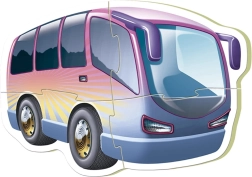 Atrakcyjne wzory pojazdów, jak kolorowy autobus, przyciągają uwagę i motywują dzieci do wielokrotnego układania.