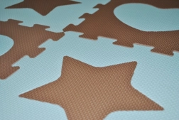 Ta piankowa mata w formie puzzli jest idealna do pokojów dziecięcych i kącików zabaw. Z dużych elementów łatwo ułożysz miękką powierzchnię do zabawy, która chroni przed chłodem płyt i podłóg laminowanych. Dzięki wyjmowanym kształtom gwiazdek i serc dzieci jednocześnie uczą się kształtów i rozwijają małą motorykę.