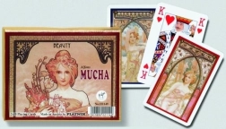 Luksusowe karty do gry z motywami Alfonsa Muchy, idealne do gier takich jak kanasta, joker lub pasjans. Podwójny zestaw po 55 kart zachwyci Cię swoim pięknem i elegancją.