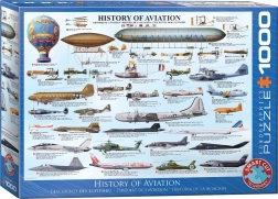 EUROGRAPHICS Puzzle Historia lotnictwa oferuje fascynującą podróż po świecie samolotów, ukazując rozwój od balonów i sterowców po nowoczesne maszyny takie jak Boeing i Lockheed. Z 1000 unikalnymi elementami to wyzwanie dla każdego miłośnika historii.