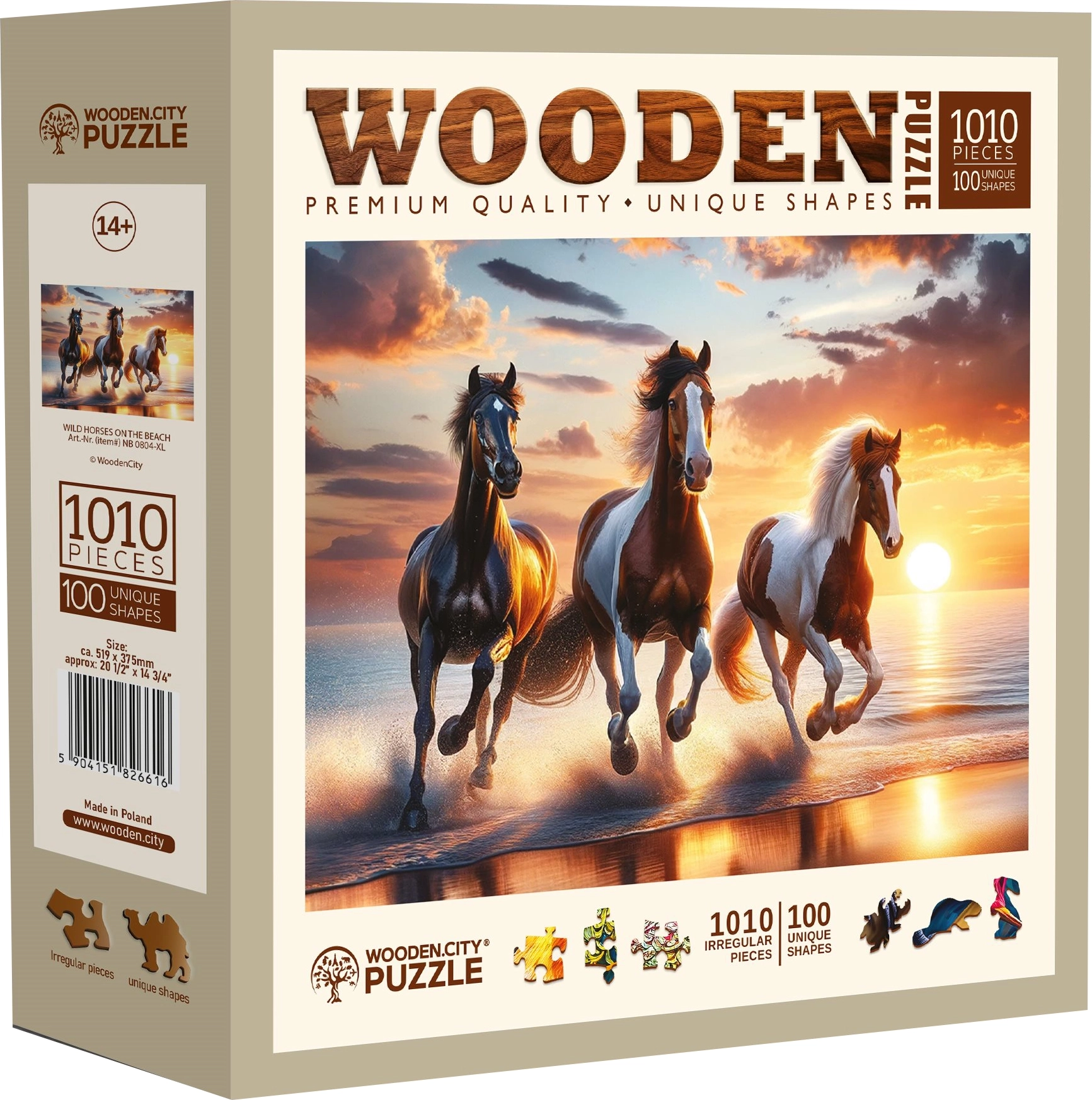 Odkryj premiumowe drewniane puzzle WOODEN CITY z motywem dzikich koni na plaży, które zachwycają unikalnie kształtowanymi elementami i precyzyjnym laserowym wykonaniem. Dzięki specjalnym elementom w kształcie zwierząt układanie jest nie tylko zabawne, ale i stanowi wyzwanie. Laserowo podkreślone detale, gładkie krawędzie bez drzazg oraz eko-opakowanie bez plastiku czynią z nich świetny prezent dla miłośników puzzli i natury.