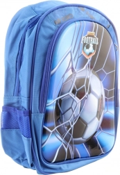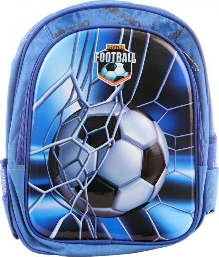 Niebieski plecak z motywem piłkarskim jest idealny dla małych miłośników sportu.
