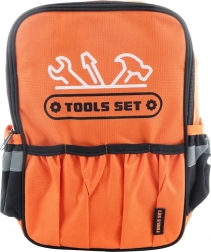 Idealny zestaw narzędzi dla dzieci, dostarczany w praktycznym materiałowym plecaku. Zestaw obejmuje szeroki wybór narzędzi, w tym: