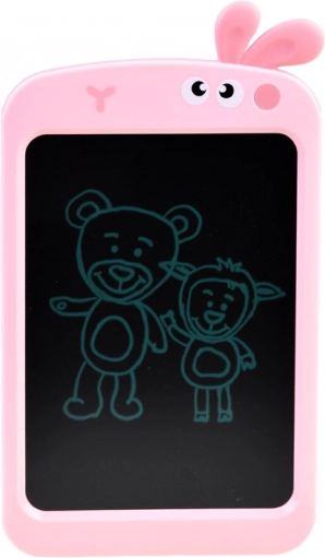 Ten dziecięcy tablet do rysowania z wyświetlaczem LCD rozwija kreatywność i małą motorykę. Powierzchnia robocza 17 × 12,5 cm zapewnia dużo miejsca na obrazki, napisy i notatki. Rodzice docenią natychmiastowe kasowanie za pomocą przycisku pod uszami króliczka oraz brak bałaganu bez papieru i kredek.