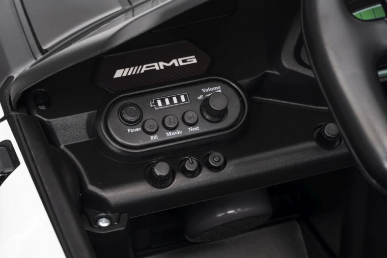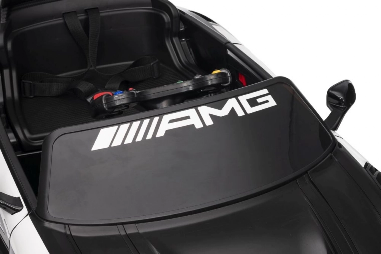 Detale karoserii, sportowe zderzaki, emblematy MERCEDES i AMG oraz tylne skrzydło wyścigowe zapewniają premiumowy wygląd, który dzieci pokochają.