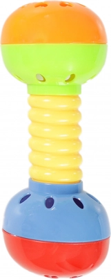 Lekka grzechotka ze śmiechem żabki i kuleczkami w przezroczystym środku rozwija słuch oraz koordynację ręka–oko.