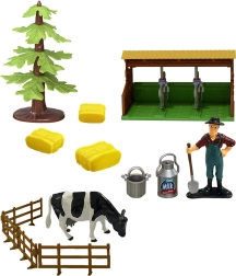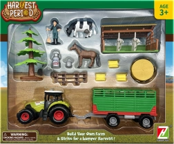 Zestaw zawiera przyczepę na siano oraz inne akcesoria rolnicze, które wzbogacają dziecięcą zabawę o nowe możliwości.
