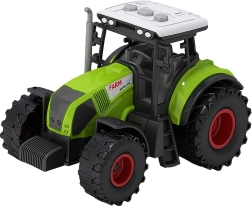 Traktor wyposażony jest w realistyczne dźwięki i migające światła, które aktywują się po naciśnięciu przycisku na dachu.