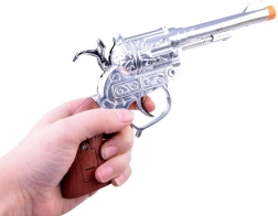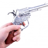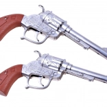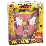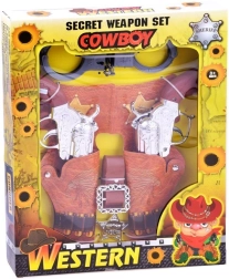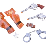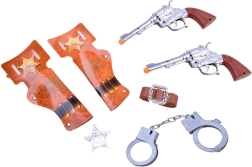 Zestaw zawiera wszystko, co potrzebne do realistycznej zabawy w kowboja: 2 rewolwery, kajdanki, pasek i gwiazdę szeryfa.
