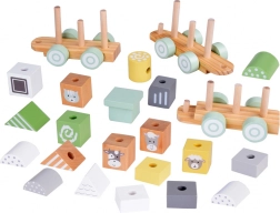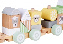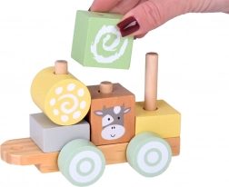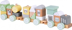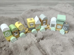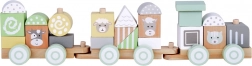 Każdy wagonik tego pociągu jest solidnie wykonany z wytrzymałego drewna i łatwo łączy się z pozostałymi, tworząc długi skład, który dzieci mogą przesuwać po podłodze. Pastelowe kolory nadają zabawce wyjątkowy urok i doskonale pasują do każdego dziecięcego pokoju.