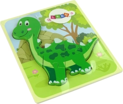 Elementy są wykonane z drewna o grubości 5 mm, co zapewnia bezpieczeństwo i łatwość obsługi dla małych dzieci. Dzięki jasnym kolorom i prostemu designowi nawet najmłodsze dzieci mogą łatwo złożyć obrazek. Dostępne są dwa rodzaje motywów dinozaurowych: tyranozaur i isanozaur. O wyborze typu prosimy poinformować sprzedawcę.