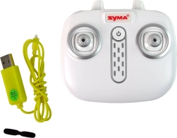 Sterowanie jest łatwe dzięki białemu pilotowi o wymiarach 13 cm x 12 cm x 5 cm (4 x baterie AA nie są dołączone). Dzięki technologii 2.4G helikopter można sterować z odległości do 20 metrów od pilota.