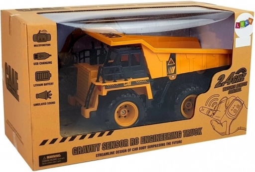 Załóż opaskę, wyciągnij rękę i ruszaj! Inteligentne sterowanie gestami przekłada ruchy nadgarstka na jazdę do przodu/tyłu oraz skręcanie, a po naciśnięciu czerwonego przycisku także na podnoszenie i opuszczanie skrzyni. Dzięki technologii 2,4 GHz sterowanie jest stabilne, bez zakłóceń, z zasięgiem do 25 metrów i łącznie 6 kanałami sterowania dla większych możliwości zabawy.