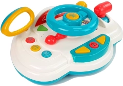 Interaktywna kierownica dla dzieci ze światłami, dźwiękami i klaksonem zamieni zabawę w małą przygodę za kierownicą. Efekty świetlne, realistyczne dźwięki silnika i jazdy, melodie i angielskie nazwy kierunków wspierają naukę i zabawę. Obrotowa kierownica i dźwignia zmiany biegów rozwijają małą motorykę, koordynację i wyobraźnię. Zabawka wykonana jest z bezpiecznych materiałów, ma certyfikat CE i jest odpowiednia od 18 miesięcy.