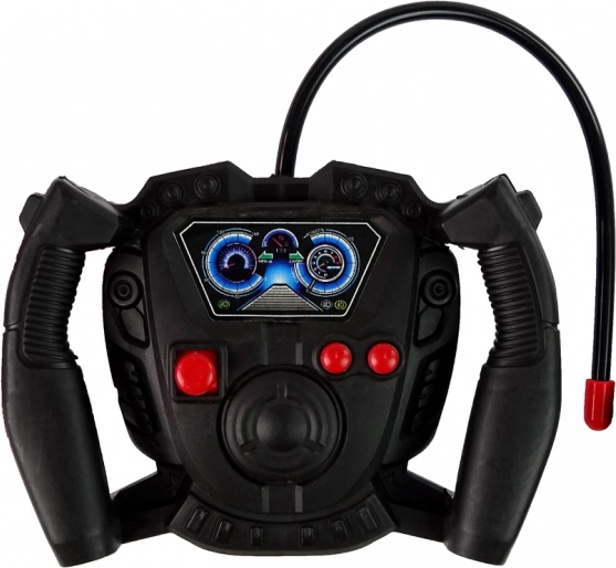 Intuicyjny pilot zdalnego sterowania umożliwia jazdę do przodu, do tyłu oraz skręcanie na boki. Ergonomiczny kształt świetnie leży w dziecięcej dłoni.