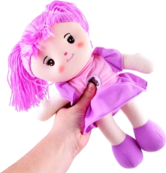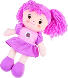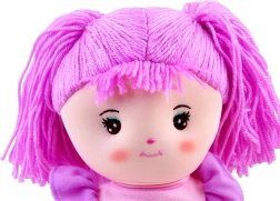 Lalkowa Zuzia zachwyca subtelnym designem w odcieniach fioletu – od włosów po sukienkę i buciki. Jest miękka, lekka i łatwa do trzymania w małych rączkach, dlatego świetnie sprawdzi się przy usypianiu lub w podróży.