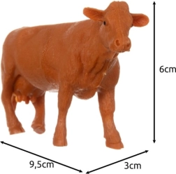 Figurki wykonano z wysokiej jakości, trwałego tworzywa, które wytrzymuje codzienną zabawę. Łatwe w czyszczeniu, a dzięki kompaktowym rozmiarom dobrze leżą w dziecięcej dłoni. Przykład: krowa ok. 9,5 × 3 × 6 cm (d × sz × w).