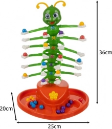 Zabawna gra zręcznościowa dla dzieci i rodziców, w której kolorowe kuleczki za pomocą pęset układa się na „łapkach” poruszającej się stonogi. Gra rozwija małą motorykę, koordynację oko–ręka oraz koncentrację. Dzięki bezpiecznemu wykonaniu, łatwej obsłudze i dostosowanemu poziomowi trudności sprawdzi się dla dzieci w wieku ok. 4–10 lat.