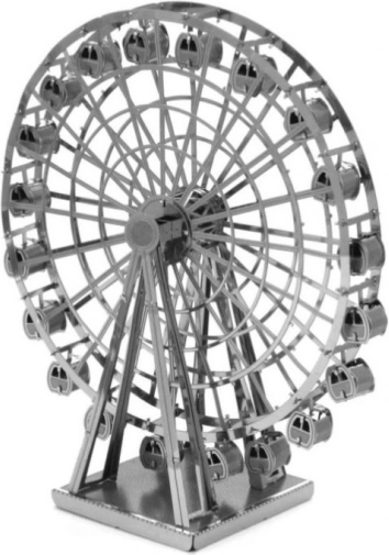 Złóż ikoniczną atrakcję w miniaturze z 2 stalowych blaszek 11 × 11 cm. Elementy są precyzyjnie wycinane i zdobione laserowym grawerowaniem dla wiernego wyglądu. Łączenie odbywa się za pomocą sprytnych zamków – języczki przeciąga się przez przygotowane otwory i zagina, więc nie są potrzebne żadne kleje ani farby. Narzędzia nie są częścią zestawu.