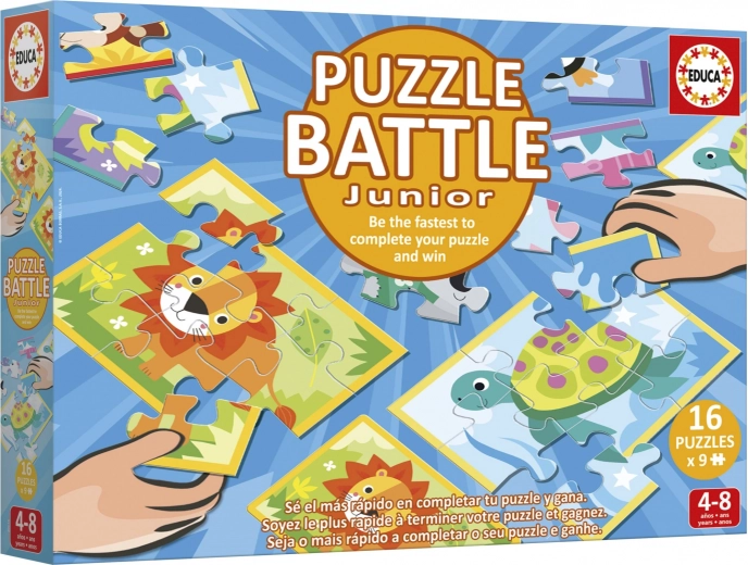 Zmień układanie puzzli w dynamiczną grę! Zestaw Educa puzzle bitwa Zwierzątka oferuje szybkie mini pojedynki, w których gracze starają się jak najszybciej ułożyć swoje zwierzęce obrazki według kart wzorcowych. Każde puzzle mają tylko 9 elementów, więc są idealne na krótsze, ale intensywne rundy.