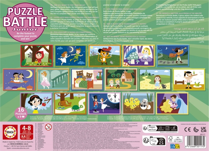 Przeżyj emocjonującą bitwę puzzli z serią Educa – szybkie układanie, zabawa i nauka w jednym. Zestaw zawiera 16 mini puzzli po 9 elementów oraz 16 kart z wzorami, idealny do rywalizacji z przyjaciółmi lub rodziną. Wspiera koordynację oko–ręka, szybkość, cierpliwość i spostrzegawczość.
