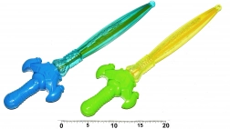 Zabawny bublifuk w kształcie miecza zamieni każdy ogród w magiczny pokaz baniek. Dzięki pojemności 125 ml i długości 41 cm tworzy mnóstwo dużych baniek, które ucieszą dzieci i dorosłych. Dostępny w różnych kolorach – różowym, zielonym i niebieskim.