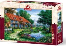 Delektuj się godzinami spokoju i koncentracji z motywem puzzli Ogród z łabędziami. Dzięki 1500 elementom po ułożeniu otrzymasz efektowny obraz o wymiarach ok. 85 × 60 cm, idealny do ekspozycji lub jako prezent dla miłośników puzzli.
