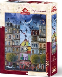 Puzzle Ulica Snów zapewniają relaksujące doświadczenie dla całej rodziny. Dzięki dopracowanemu motywowi i dokładnym elementom całość dobrze się trzyma, a układanie jest płynne i przyjemne. Gotowy obraz ma wymiary ok. 34 × 48 cm, idealne do oprawienia w ramę lub jako dekoracja wnętrza.