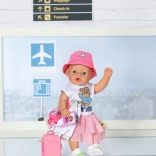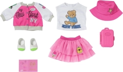 Stylowy podróżny zestaw dla lalek BABY BORN w rozmiarze 43 cm zamieni każdą zabawę w przygodę. Zawiera dopasowaną kurtkę z motywem NY, koszulkę z misiem, różową tiulową spódniczkę, czapkę, buty oraz praktyczną mini walizeczkę. Idealny do kreatywnej zabawy w podróż, łatwego ubierania i długotrwałej rozrywki.