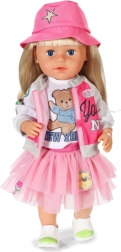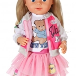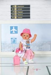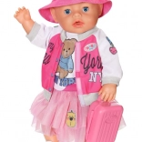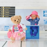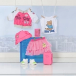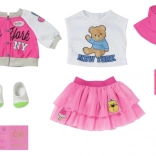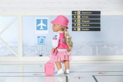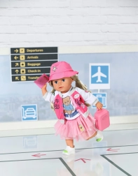 Podaruj swojej lalce BABY BORN perfekcyjny strój w podróż. Ten różowy zestaw łączy wygodę i styl – od lekkiej kurtki z ikonicznym motywem NY przez figlarną koszulkę z misiem po puszystą tiulową spódnicę i wygodne buciki. W komplecie także urocza walizeczka i paszport do realistycznych scenariuszy zabawy.