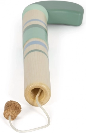 Ta starannie wykonana drewniana strzelba korkowa łączy naturalny wygląd ze stonowanymi kolorami i zachęca do aktywnej zabawy w domu i na zewnątrz. Dzięki przymocowanemu korkowemu pociskowi na sznurku nic się nie zgubi, a dzieci mogą raz po raz ćwiczyć celność i spostrzegawczość.