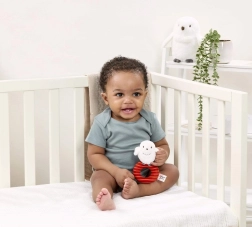 Dzięki atrakcyjnym kolorom i uroczemu wzornictwu dzieci szybko pokochają grzechotkę. Wysoka jakość wykonania i bezpieczne materiały czynią z tej zabawki niezawodnego towarzysza codziennej zabawy.