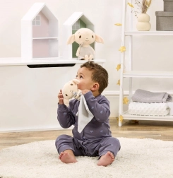 Przytulanka Dobby to miękki, kojący towarzysz inspirowany światem Harry’ego Pottera. Szary kocyk z napisami i gwiazdkami przyciąga wzrok, a mięciutkie ciałko z dużymi uszami i starannym przeszyciem zapewnia bezpieczne i przyjemne tulenie dla każdego maluszka.