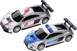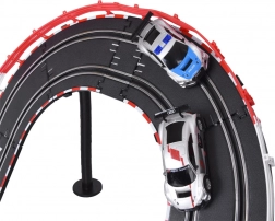 Ekstra długa elektryczna kolejka samochodowa jest marzeniem każdego małego fana rajdów i aut. Tor o długości około 8 m z dwoma pojazdami, ekstremalnymi podjazdami i zakrętami zapewni mnóstwo emocji podczas zabawy. Dwa superszybkie auta na licencji Audi wykonano z dbałością o detale. Cały zestaw prezentuje się bardzo efektownie.