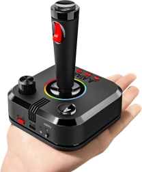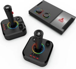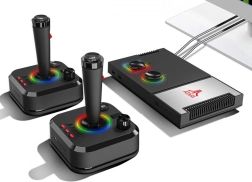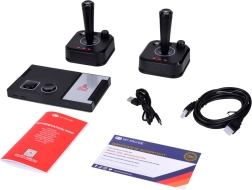 W zestawie znajdują się 2 bezprzewodowe kontrolery 2,4 GHz z obrotowymi pokrętłami, zapewniające autentyczne sterowanie w grach takich jak Breakout czy Warlords.