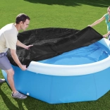 Praktyczna pokrywa na basen BESTWAY została zaprojektowana do szybkiej i bezpiecznej ochrony wody. Otwory odpływowe zapobiegają gromadzeniu się wody deszczowej na plachcie, a obwodowa linka ściągająca zapewnia, że pokrywa mocno trzyma się nawet przy wietrze. Wytrzymałe PVC sprawdza się w codziennym użytkowaniu i łatwo się czyści.