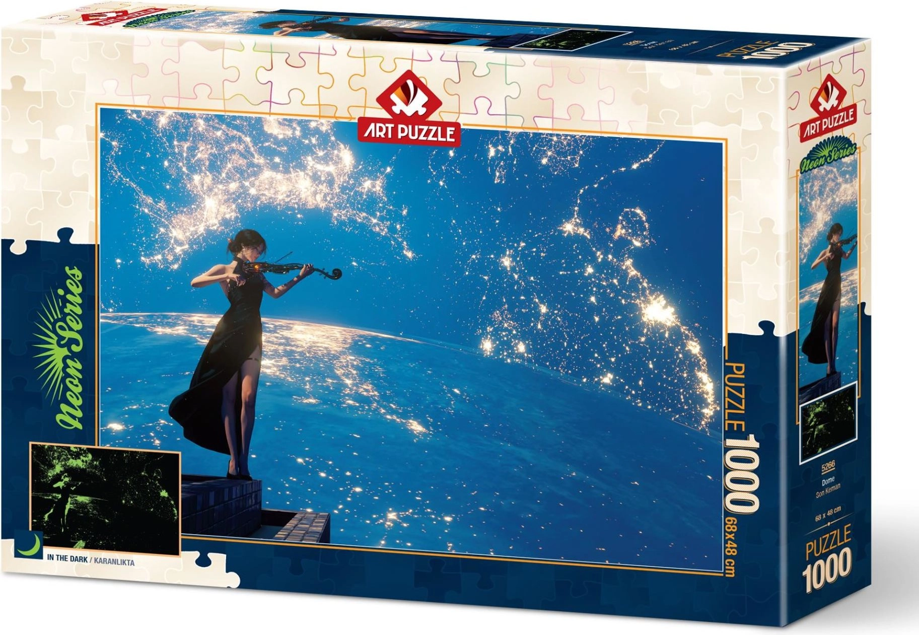 Odkryj magię nocnego układania ze świecącymi puzzlami NEON. Ten motyw „Kopuła” o 1000 elementach wykorzystuje specjalne farby fluorescencyjne, które ładują się w ciągu dnia i świecą w ciemności. Tworzą przyjemną atmosferę podczas relaksu i układania. Producent ART PUZZLE oferuje ponadto usługę wysłania brakującego elementu.