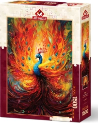 Odkryj harmonię barw i detali z motywem puzzli Kolorowy paw. Dzięki 1500 precyzyjnie wycinanym elementom uzyskasz wyrazisty obraz, który świetnie sprawdzi się jako dekoracja domu oraz prezent dla miłośników puzzli.